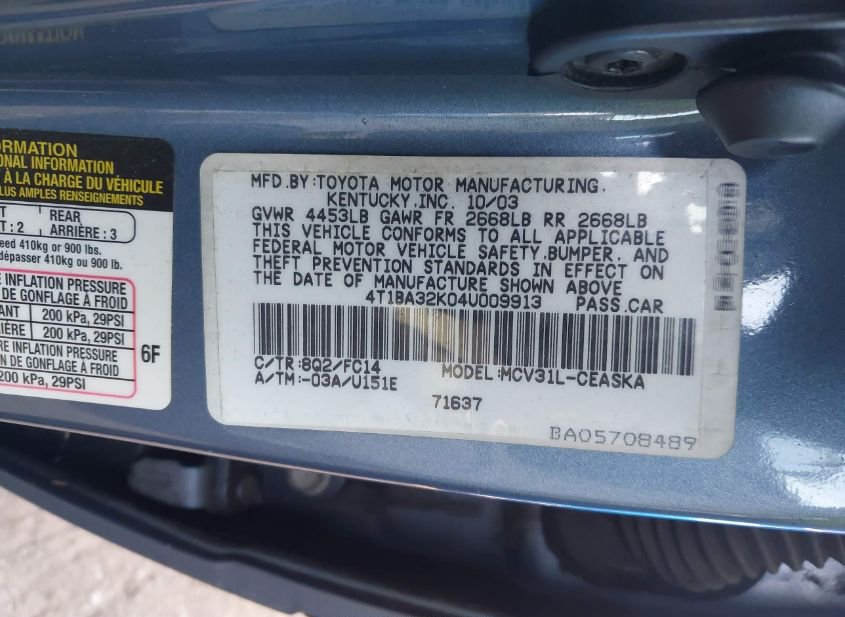 - VIN: 4T1BA32K04U009913