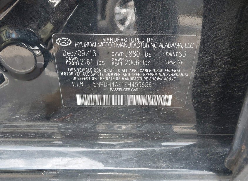 - VIN: 5NPDH4AE1EH459656