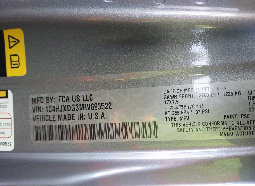 - VIN: 1C4HJXDG3MW693522