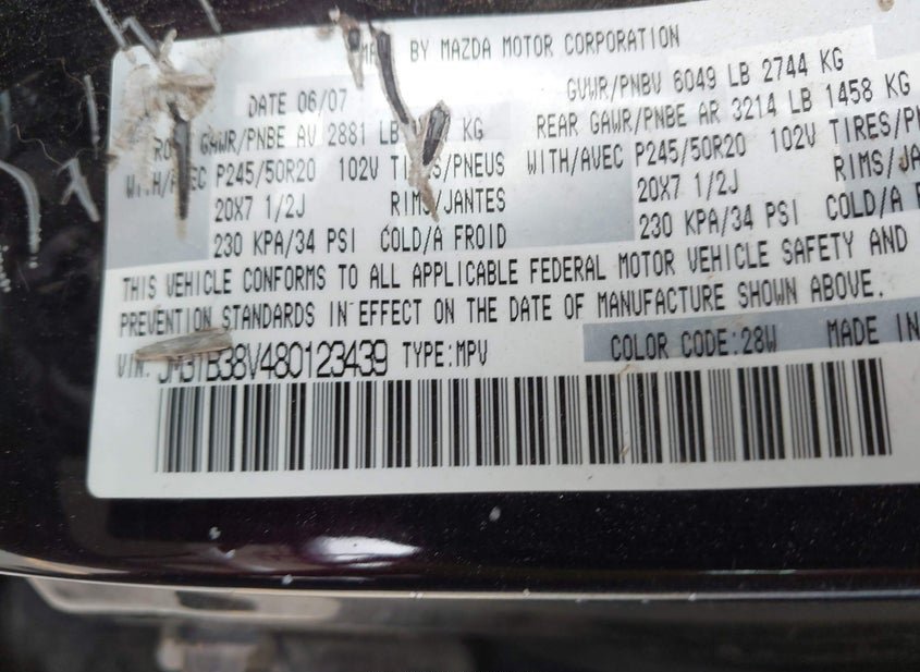 - Название лота: 2008 MAZDA CX-9 GRAND TOURING