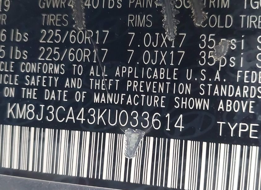 - VIN: KM8J3CA43KU033614