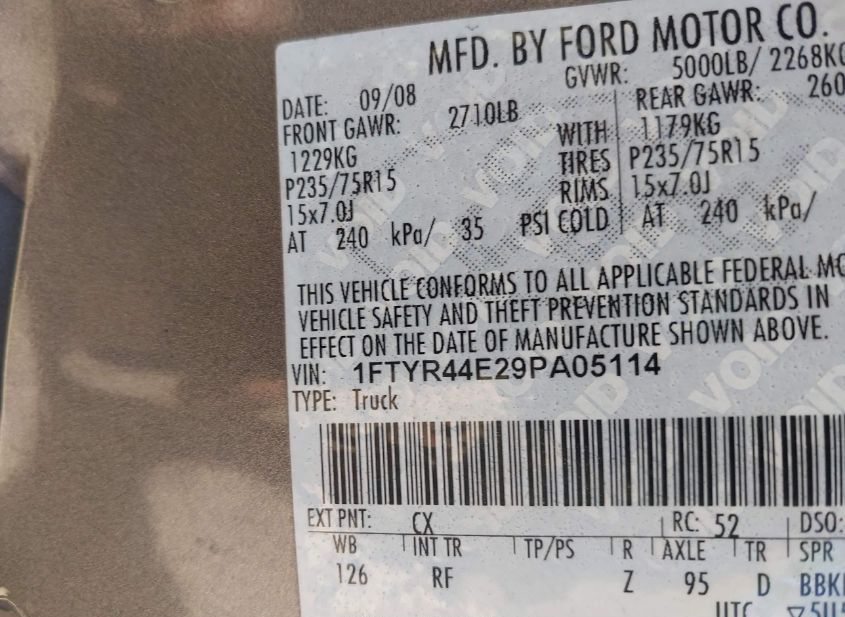 - VIN: 1FTYR44E29PA05114