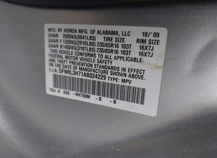 - VIN: 5FNRL3H71AB024229