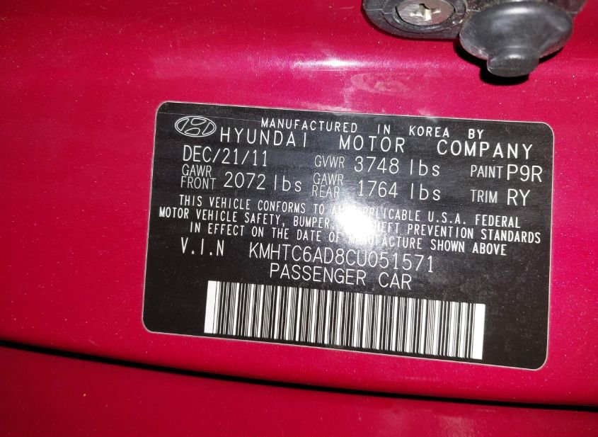 - VIN: KMHTC6AD8CU051571