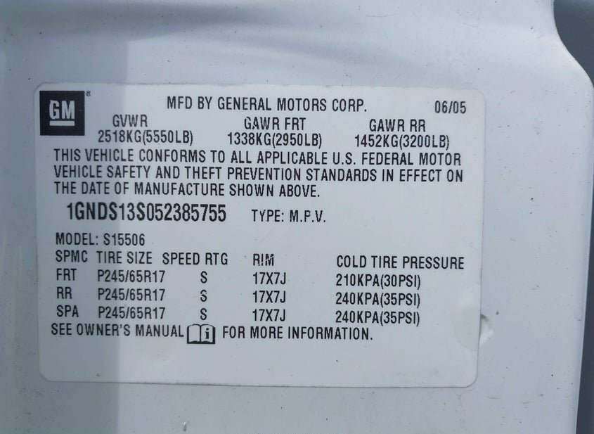 - VIN: 1GNDS13S052385755