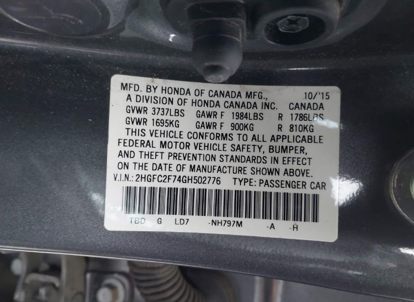 - VIN: 2HGFC2F74GH502776