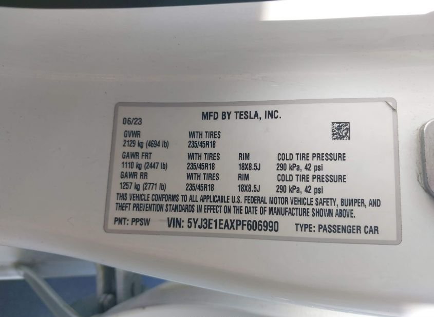- VIN: 5YJ3E1EAXPF606990
