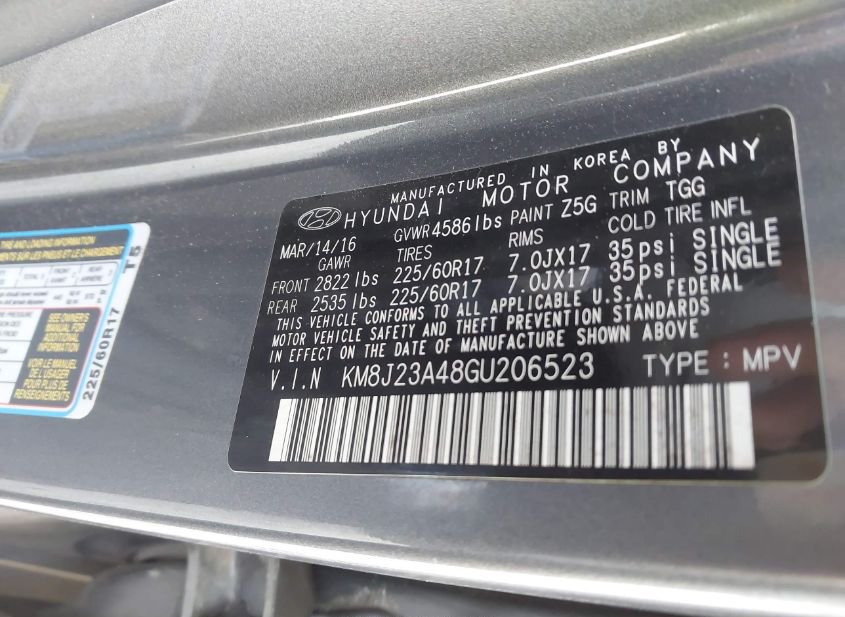 - Название лота: 2016 HYUNDAI TUCSON SE