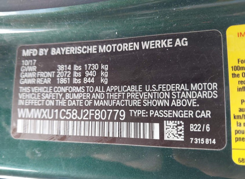 - VIN: WMWXU1C58J2F80779