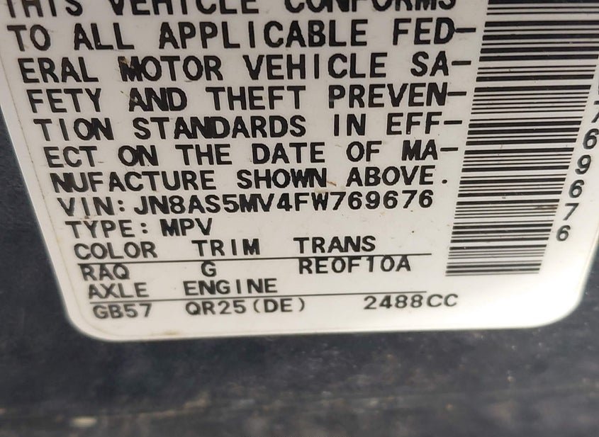 - VIN: JN8AS5MV4FW769676
