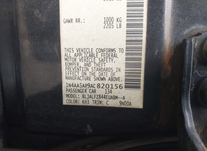 - VIN: 1N4AA5AP9AC820156