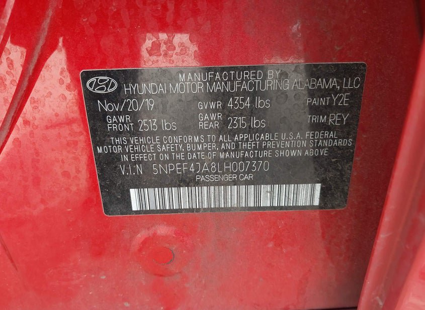 - VIN: 5NPEF4JA8LH007370