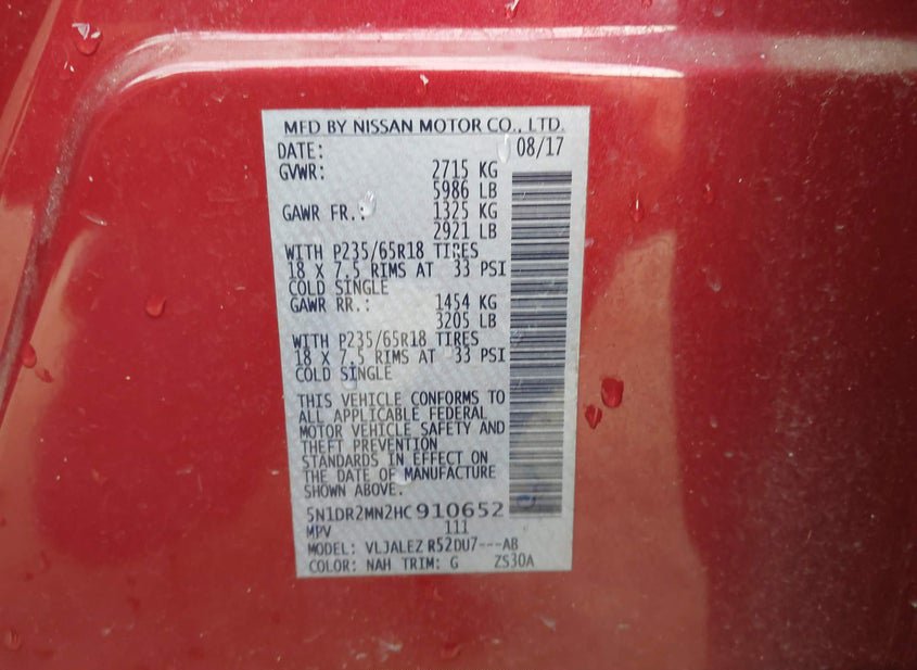 - VIN: 5N1DR2MN2HC910652