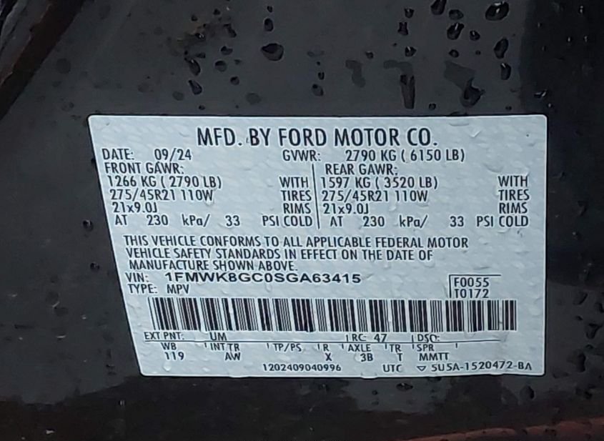 - VIN: 1FMWK8GC0SGA63415