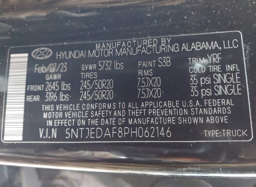 - VIN: 5NTJEDAF8PH062146