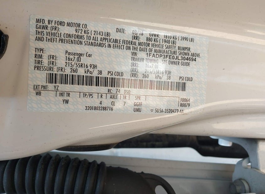 - VIN: 1FADP3FE0JL304694