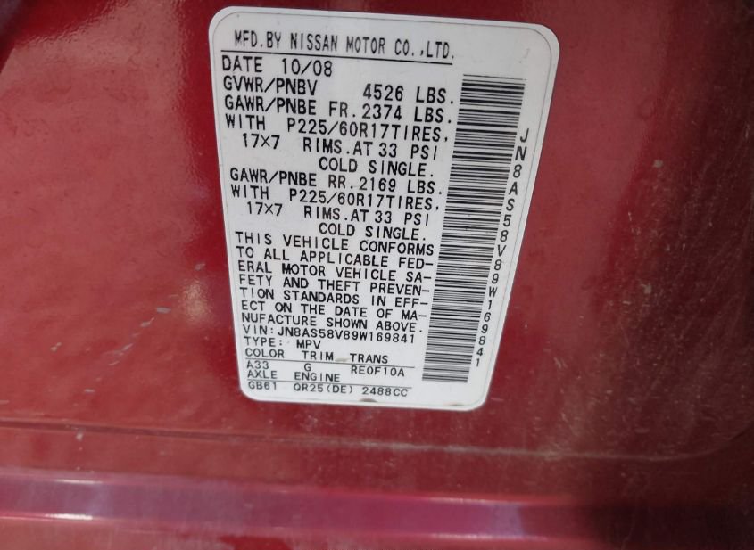 - VIN: JN8AS58V89W169841