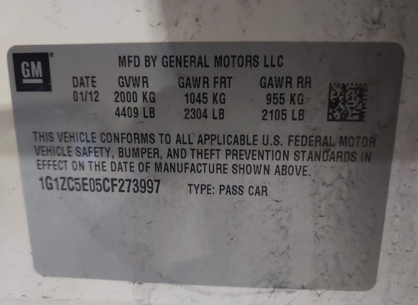 - VIN: 1G1ZC5E05CF273997