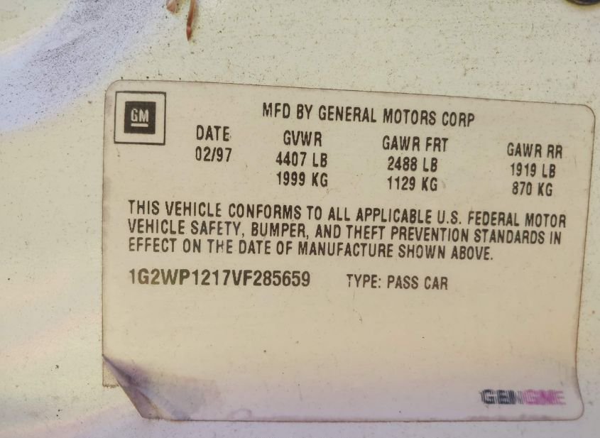 - VIN: 1G2WP1217VF285659