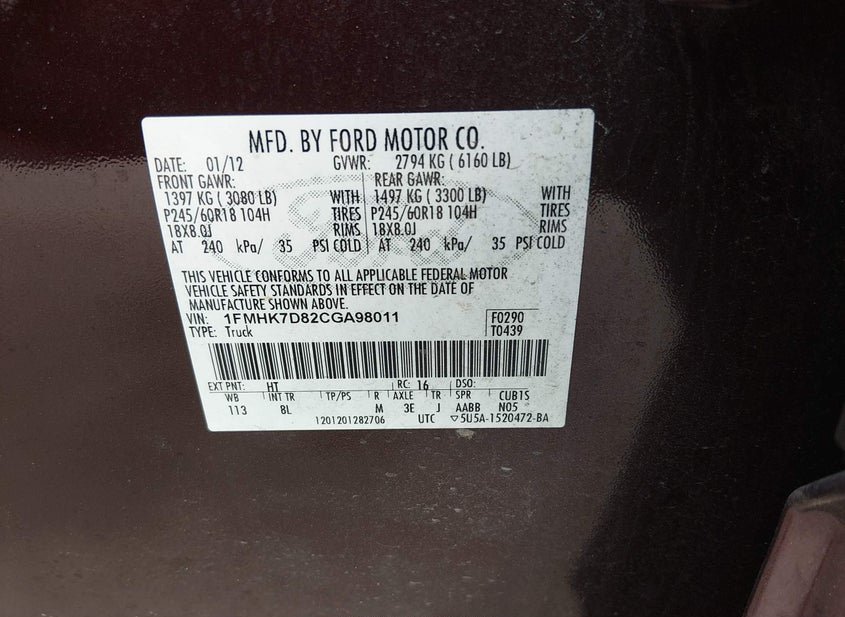 - VIN: 1FMHK7D82CGA98011