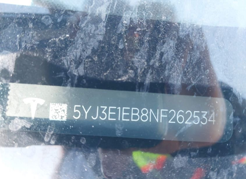- VIN: 5YJ3E1EB8NF262534