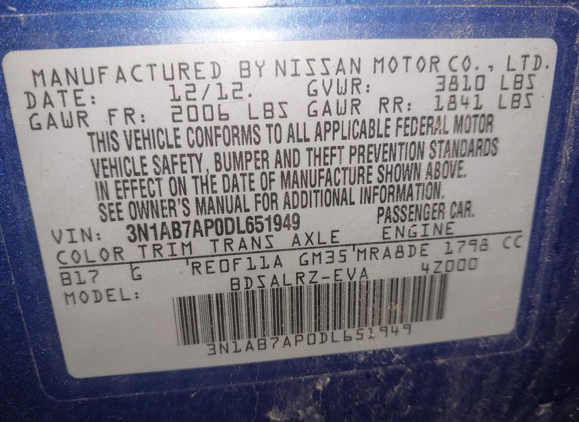 - VIN: 3N1AB7AP0DL651949