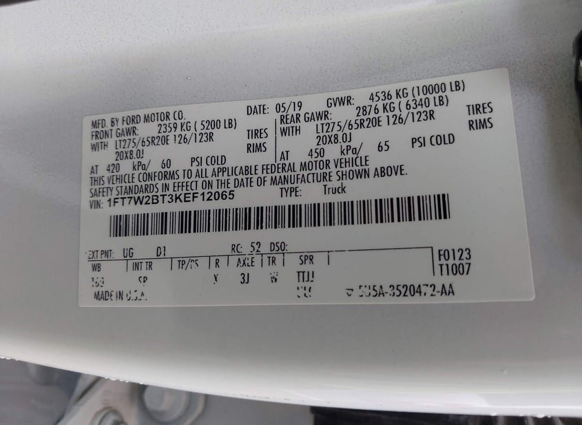 - VIN: 1FT7W2BT3KEF12065