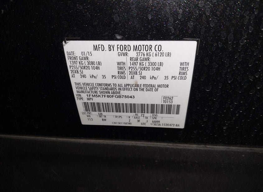 - VIN: 1FM5K7F80FGB75043