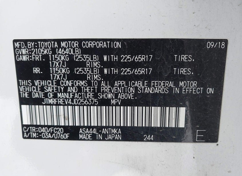- VIN: JTMRFREV4JD256375