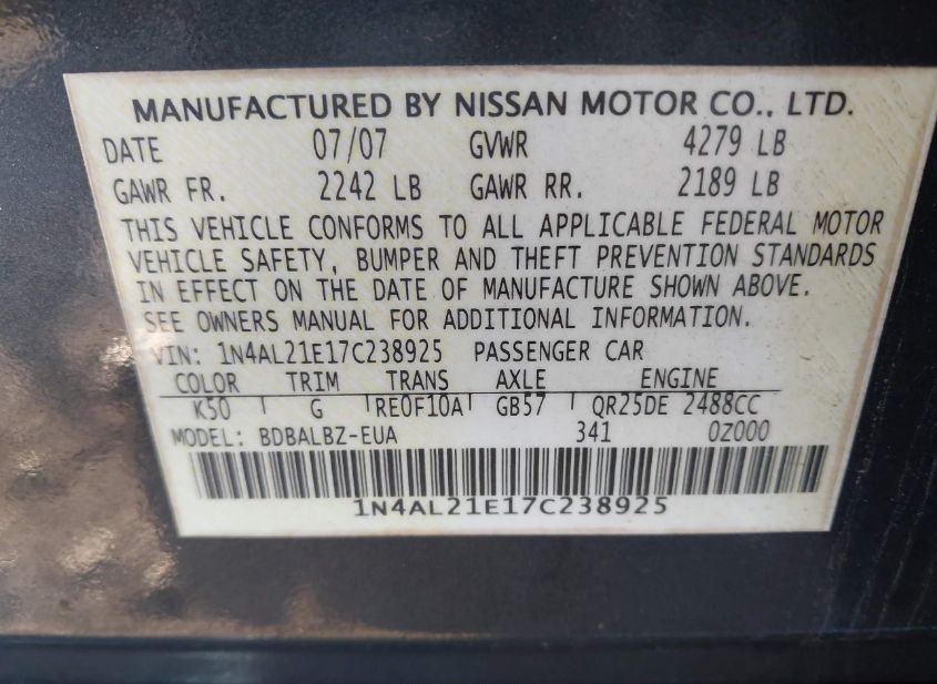 2007 NISSAN ALTIMA 2.5 S