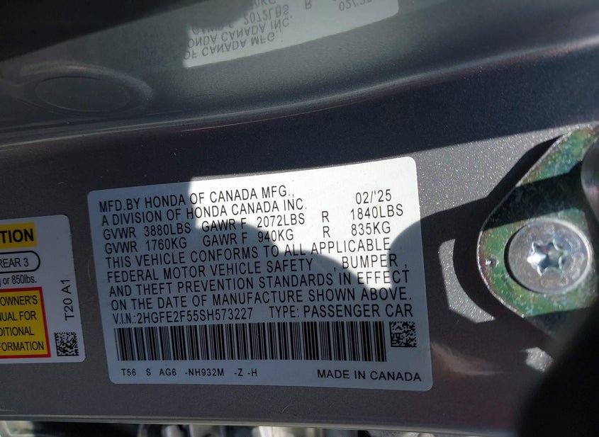 - VIN: 2HGFE2F55SH573227