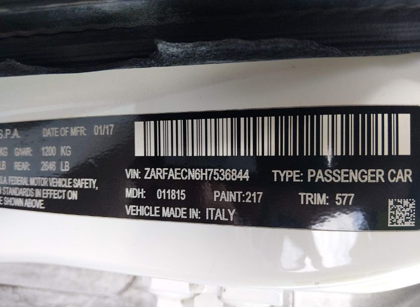 - Название лота: 2017 ALFA ROMEO GIULIA TI RWD