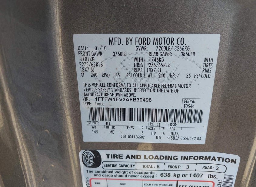 - VIN: 1FTFW1EV3AFB30498