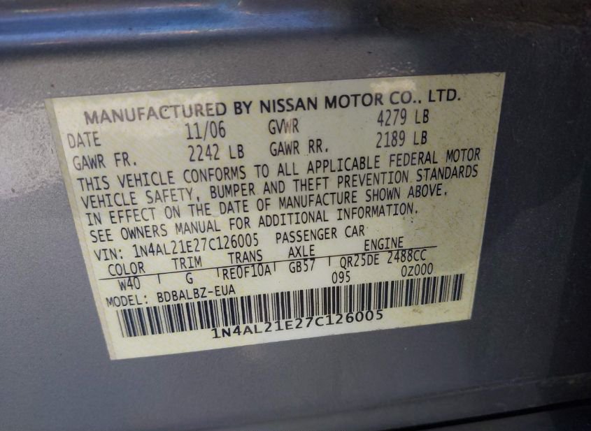- VIN: 1N4AL21E27C126005