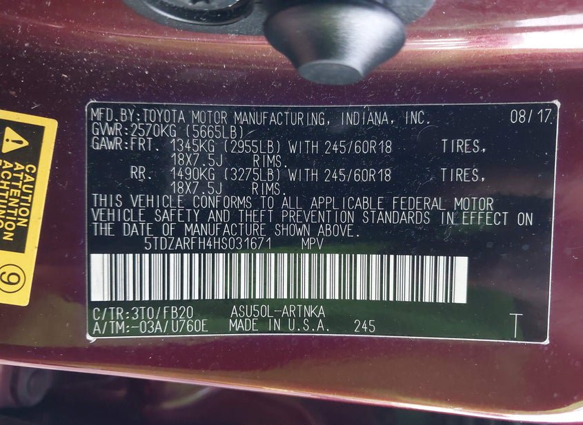 - VIN: 5TDZARFH4HS031671