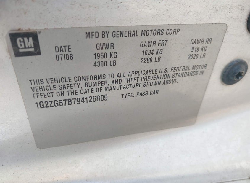 - VIN: 1G2ZG57B794126809
