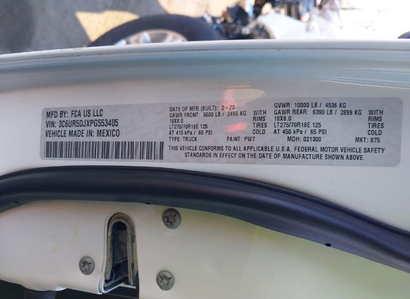 - VIN: 3C6UR5DJXPG553405
