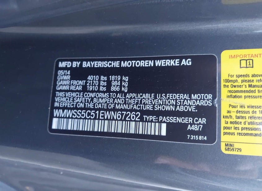 - VIN: WMWSS5C51EWN67262