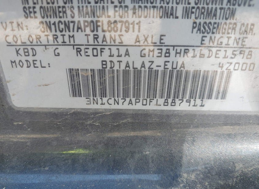 - VIN: 3N1CN7AP0FL887911