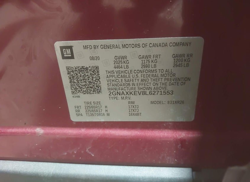 - VIN: 2GNAXKEV8L6271553