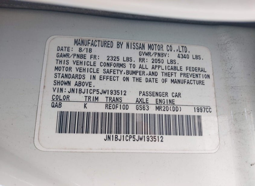 - VIN: JN1BJ1CP5JW193512