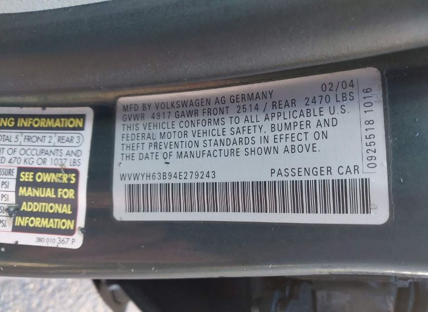 - VIN: WVWYH63B94E279243