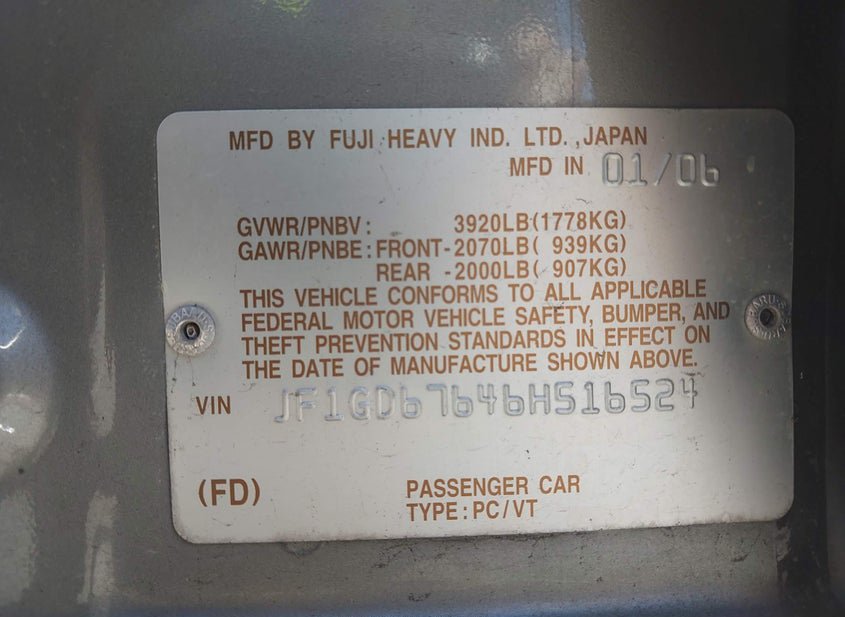- VIN: JF1GD67646H516524
