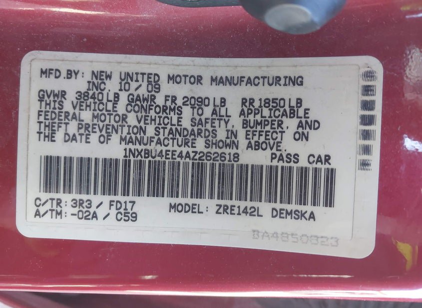 - VIN: 1NXBU4EE4AZ262618