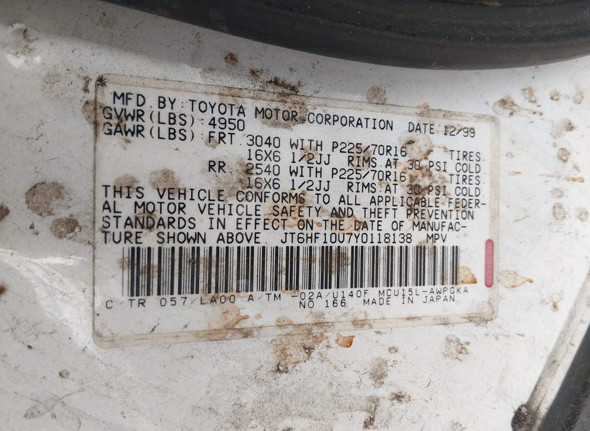 - VIN: JT6HF10U7Y0118138