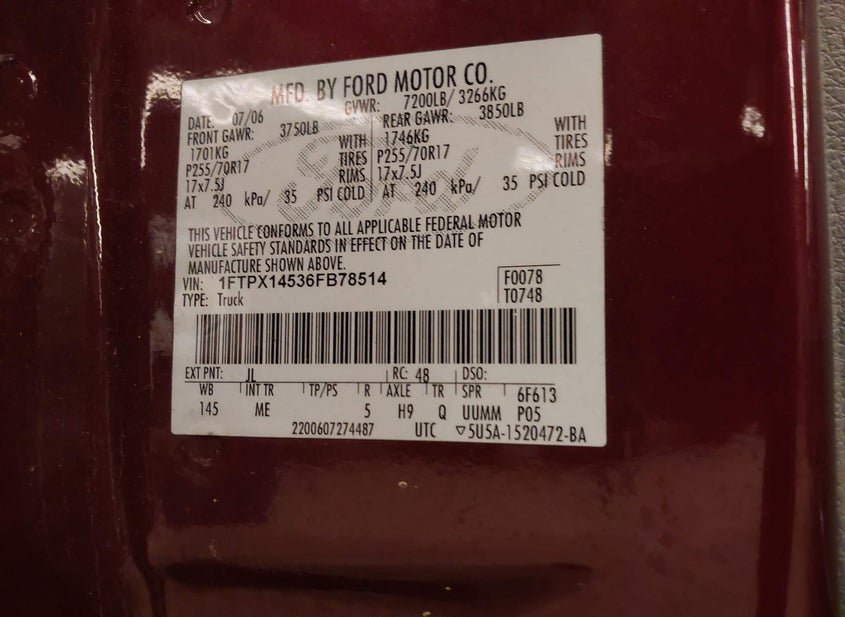 - VIN: 1FTPX14536FB78514
