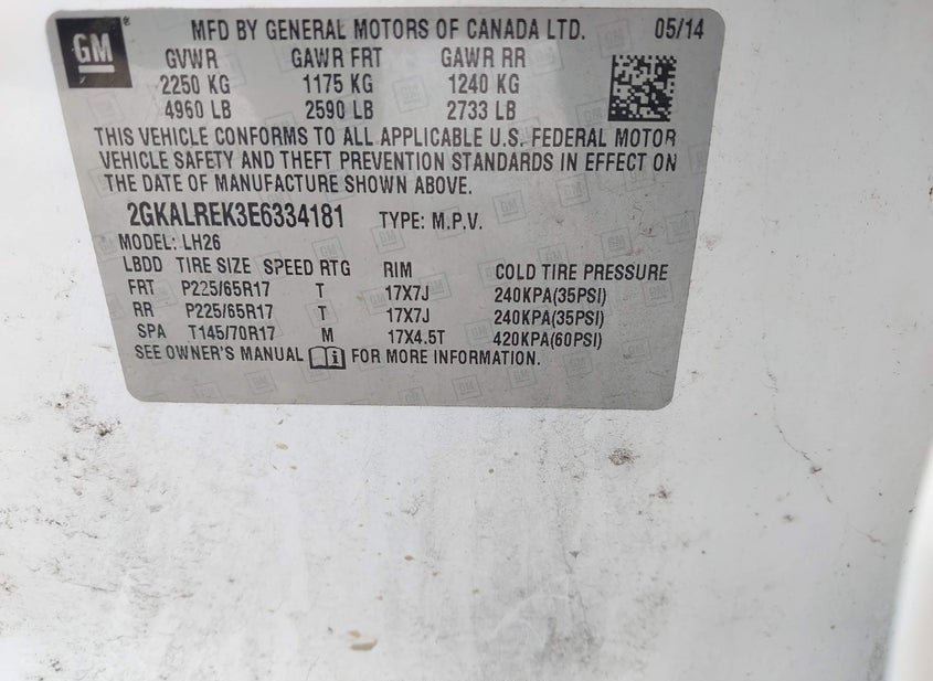 - VIN: 2GKALREK3E6334181