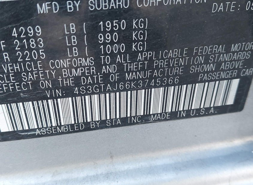 - VIN: 4S3GTAJ66K3745366
