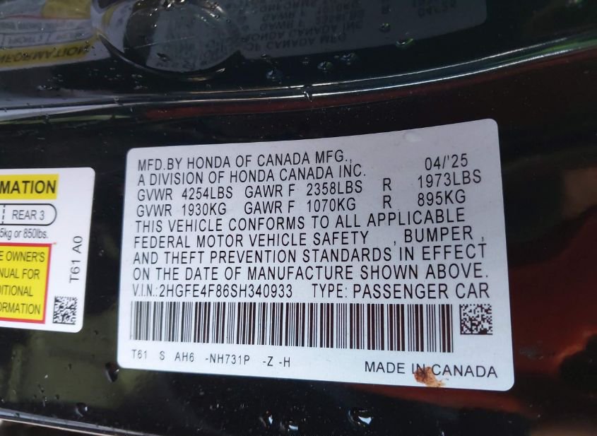 - VIN: 2HGFE4F86SH340933