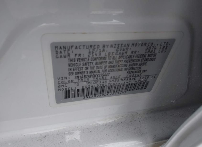 - VIN: 3N1AB7AP0KY279447